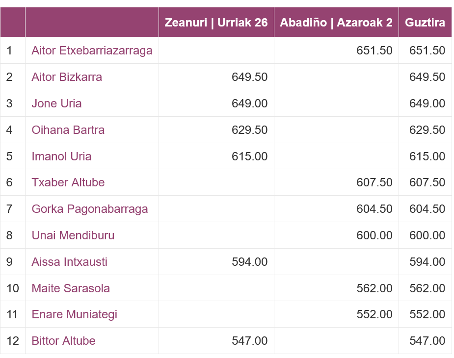 Bigarren finalaurreko honetan Txaber Altube gelditu da bigarren 607,5 punturekin eta Gorka Pagonabarraga hirugarren 604,5 punturekin.