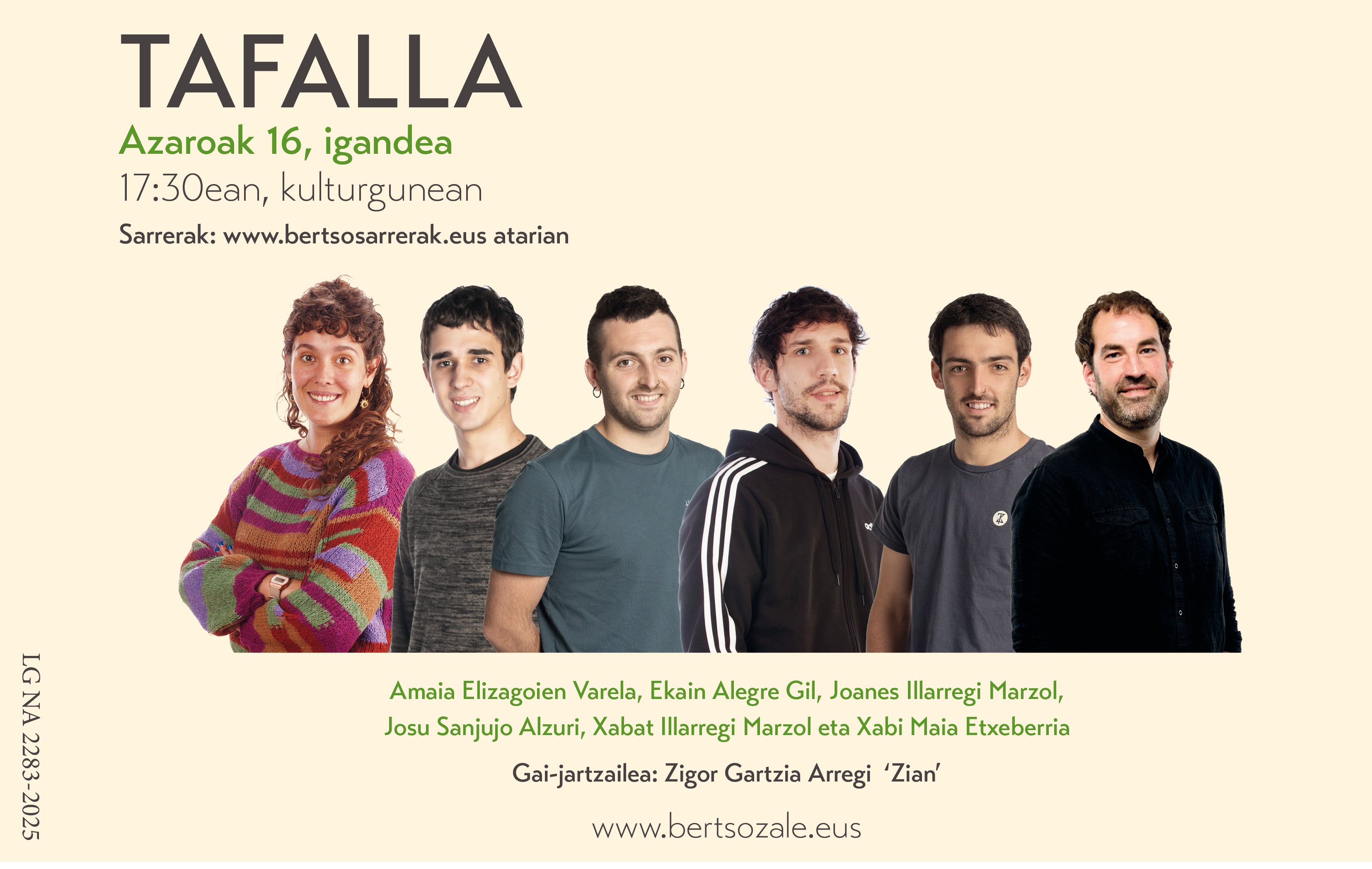 Nafarroako Txapelketaren historian lehenengoz Tafallan argituko da finalisten zortzikotea. Azaroaren 16an izango da hori. Finaleko zortzikotean bertsolari berri bat izango da ziur, Saats Karasatorre iazko finalistak ez baitu parte hartu finalaurrekoetan.