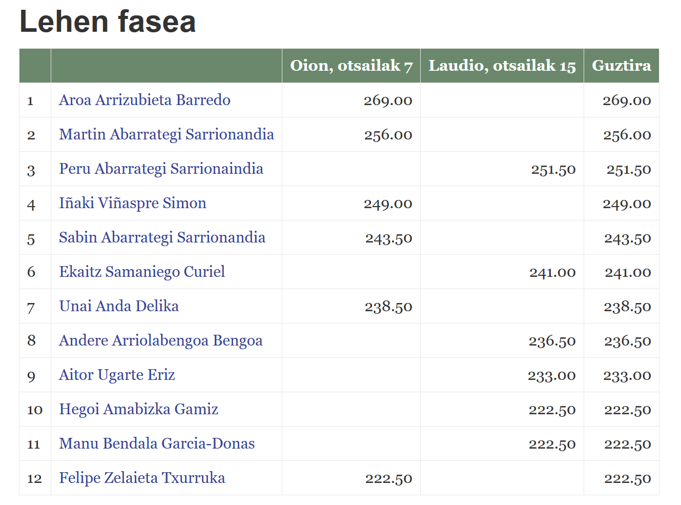 Peru Abarrategik irabazi du Arabako Txapelketako bigarren saioa Laudion, 251,5 punturekin, eta finalerdietarako zuzeneko txartela eskuratu du aramaioarrak.